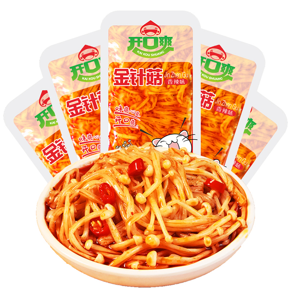 【首单1元+点击右上角三个点进入淘金币抵扣2.38元后10.03元,到手30包零食】开口爽金针菇小零食散装,休闲大洲红油香辣味小包装下饭菜,开袋即食,香辣爽口