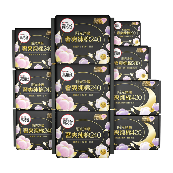 【任选2套!再加赠】高洁丝阳光烘烘纯棉卫生巾防漏日夜组合