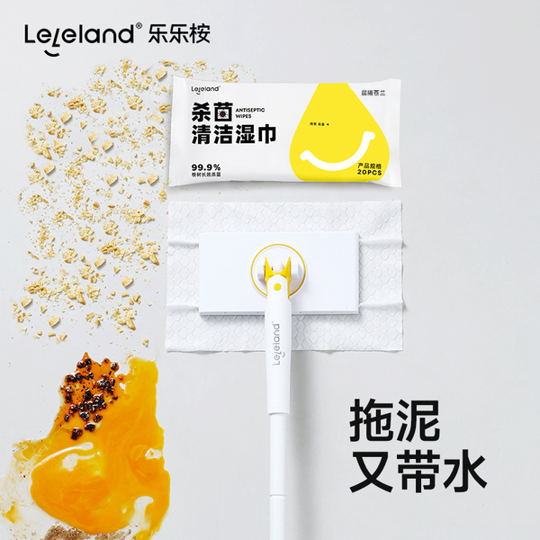 夹布拖搭配湿巾使用,强效去污,吸附粉尘,轻松搞定全屋清洁问题;巴掌大小的板面,可以钻到任何缝隙,轻盈灵活,高处也能擦到;一压锁纸,一拉扔纸,尾部隐藏小夹子,全程不脏手